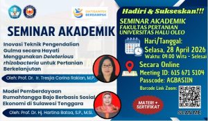 Kendari – Fakultas Pertanian Universitas Halu Oleo (UHO) kembali menunjukkan komitmennya dalam pengembangan ilmu pengetahuan dan pengabdian masyarakat melalui pelaksanaan Seminar Akademik yang mengangkat dua tema strategis, yakni inovasi pertanian berkelanjutan dan pemberdayaan masyarakat pesisir.